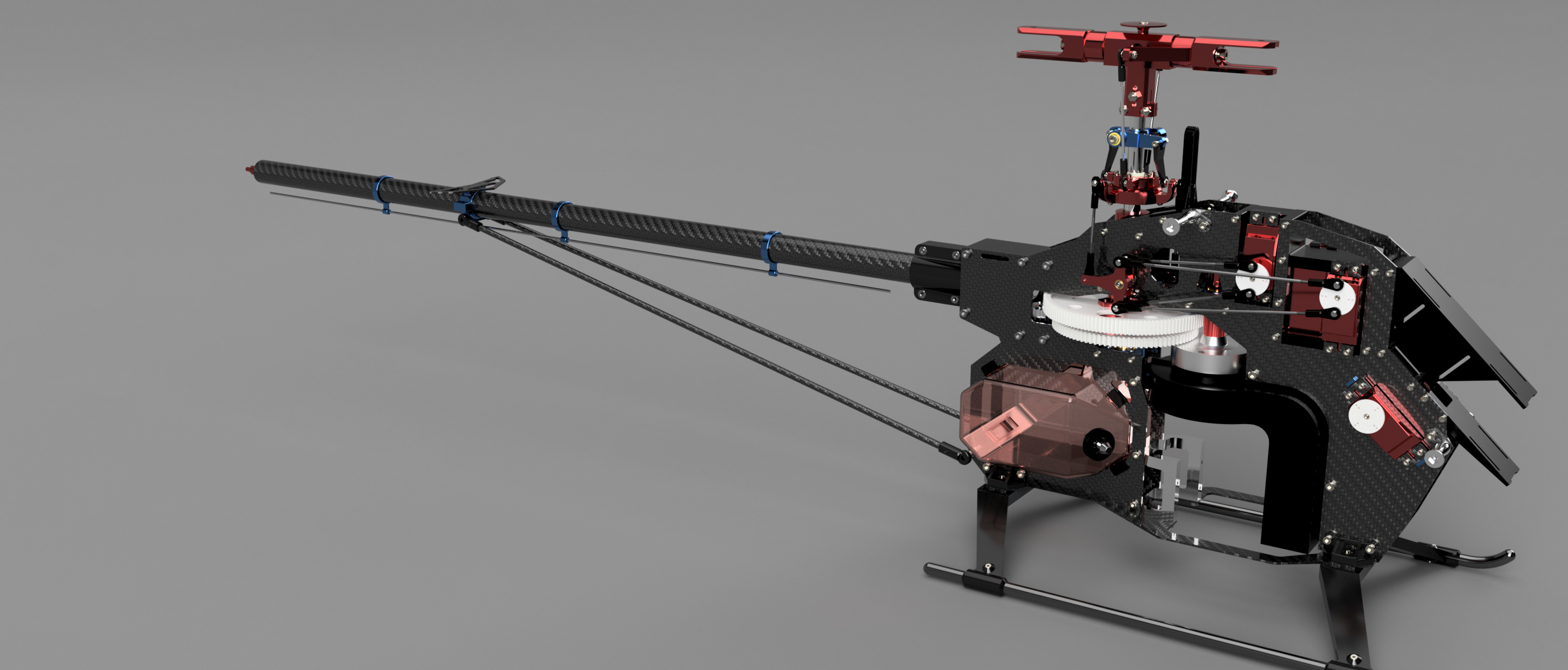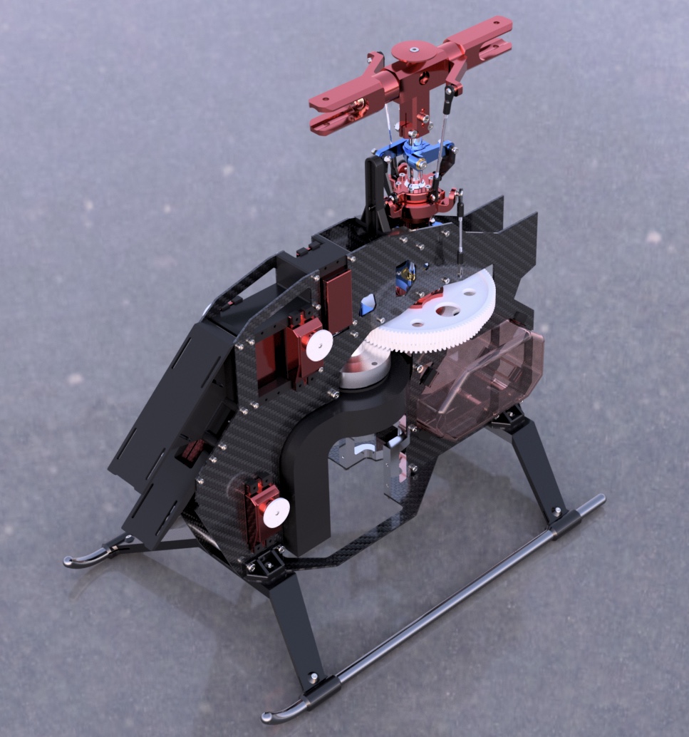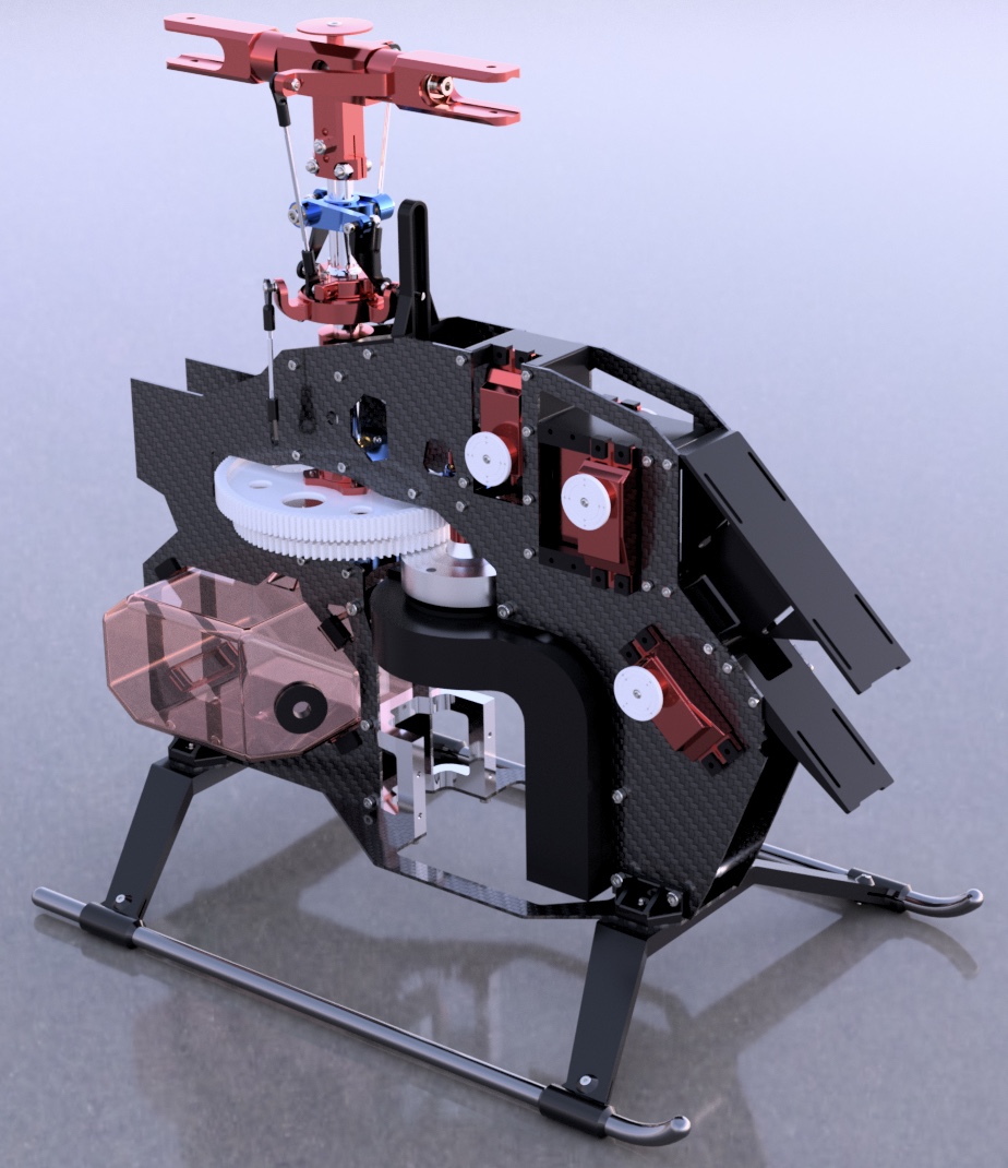 This project represents my first major venture into CAD design - a detailed 3D model heavily inspired by the Velocity Outrage 50 RC helicopter. While not an exact replica, this model pays homage to the original design, incorporating many similar mechanical elements and structural features.