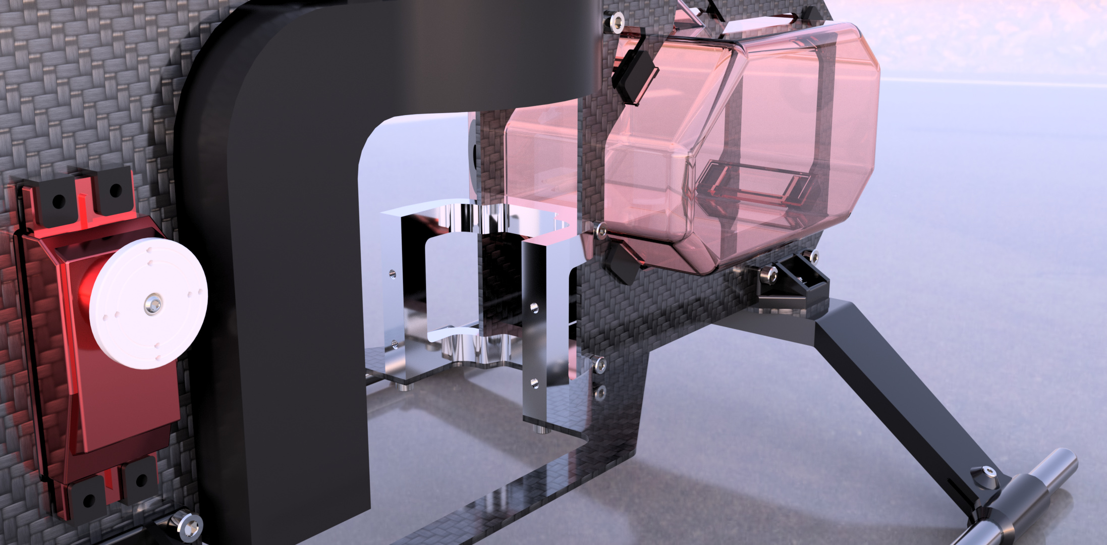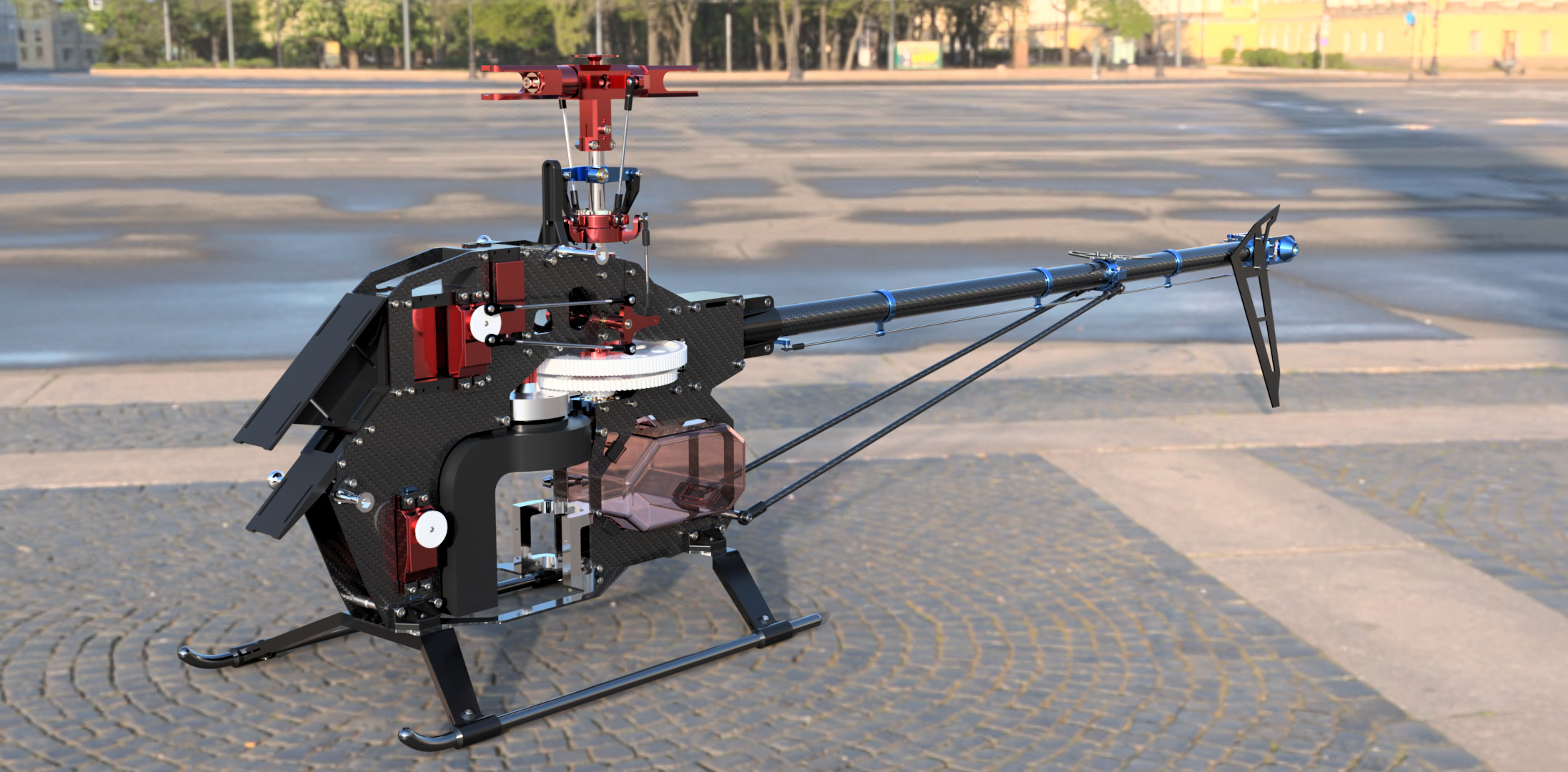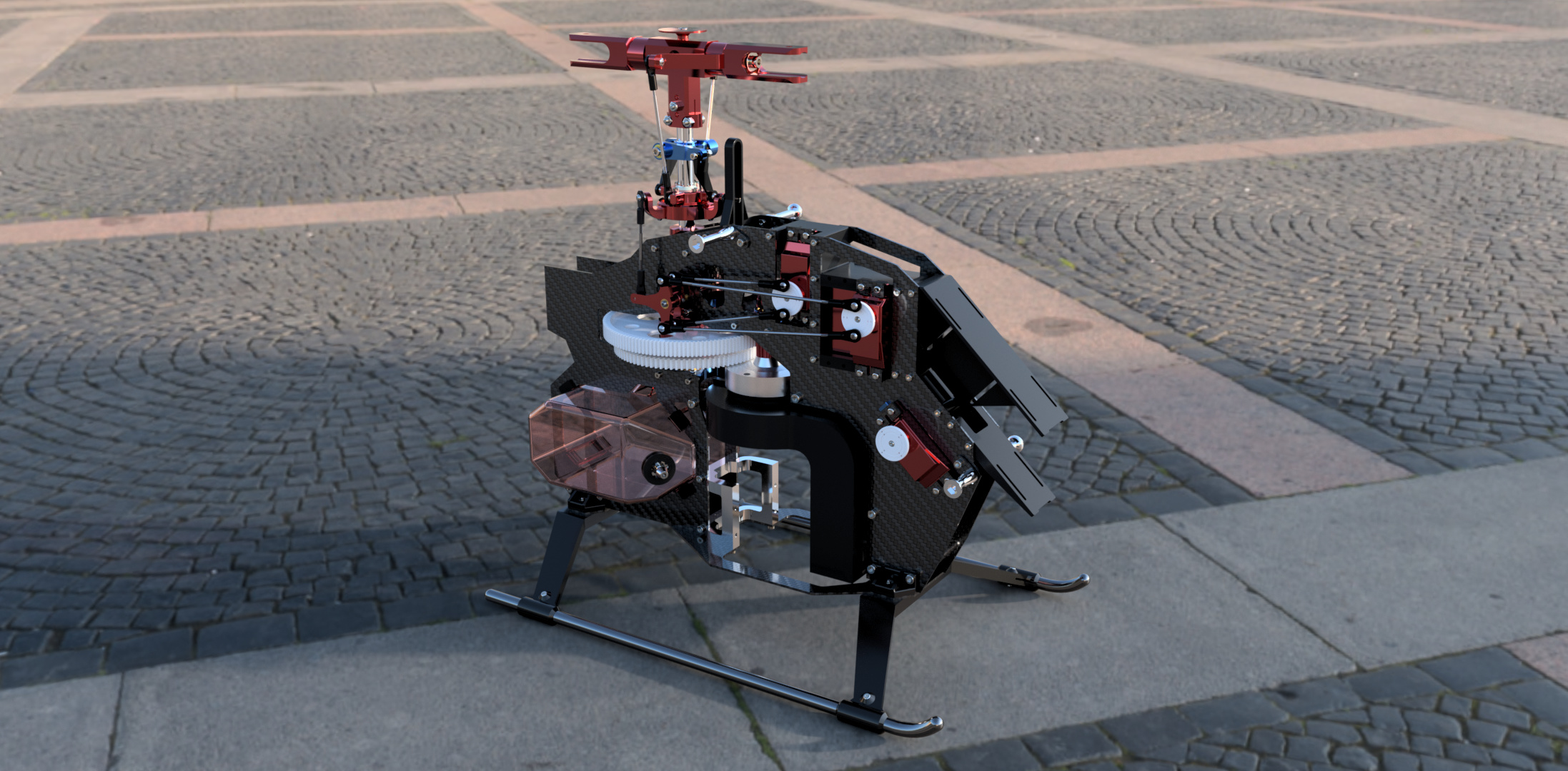 This project represents my first major venture into CAD design - a detailed 3D model heavily inspired by the Velocity Outrage 50 RC helicopter. While not an exact replica, this model pays homage to the original design, incorporating many similar mechanical elements and structural features.