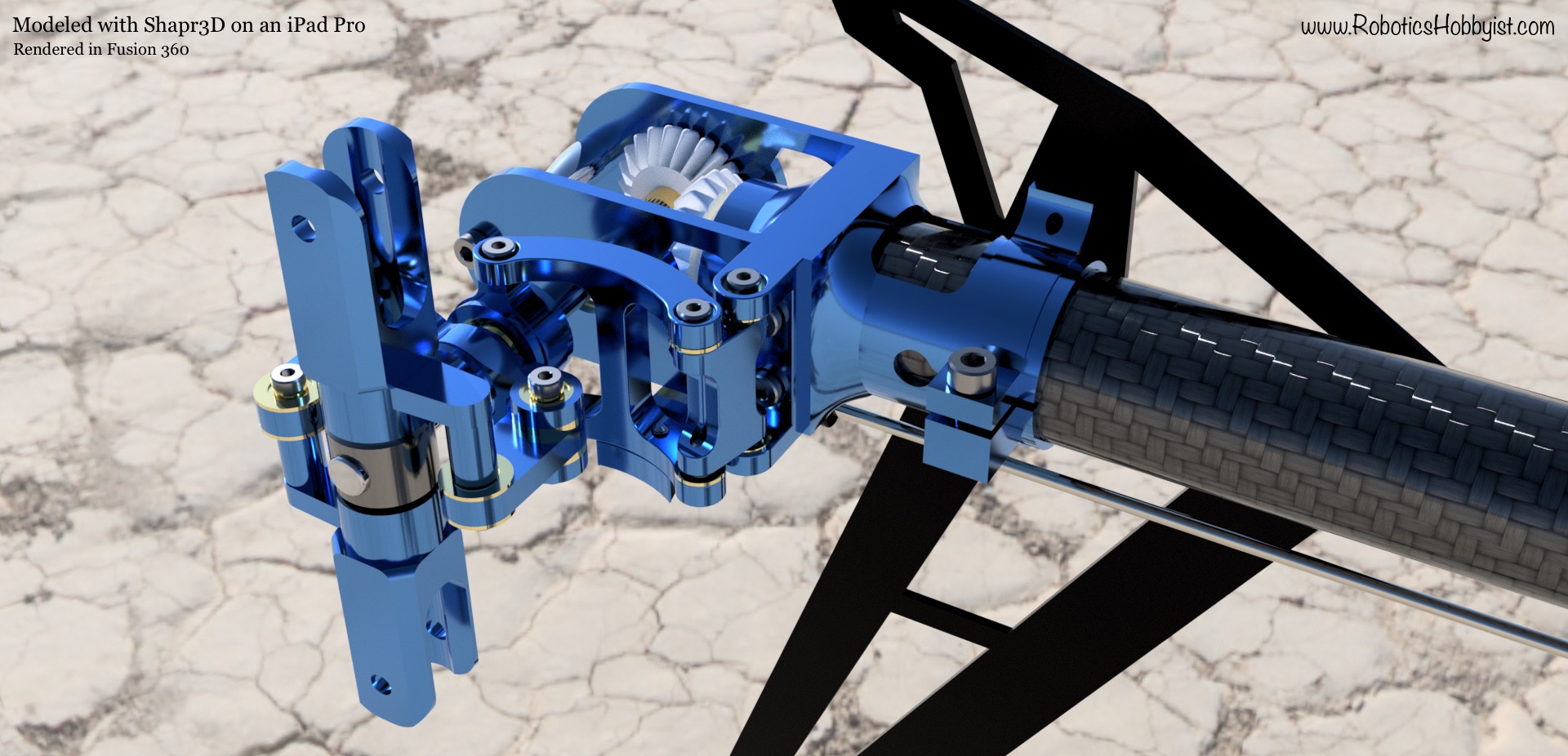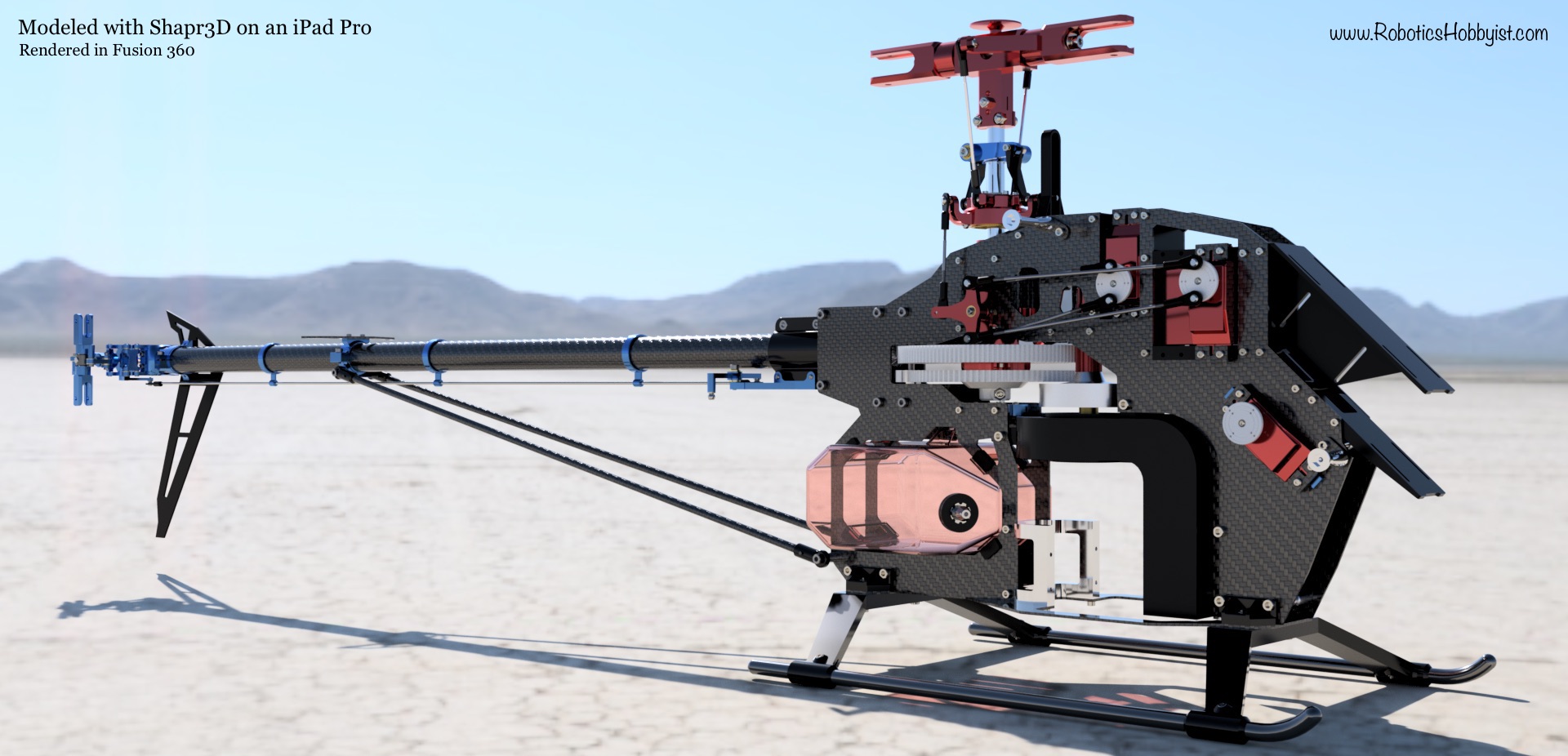 The gallery below showcases various views and components of the RC helicopter design: